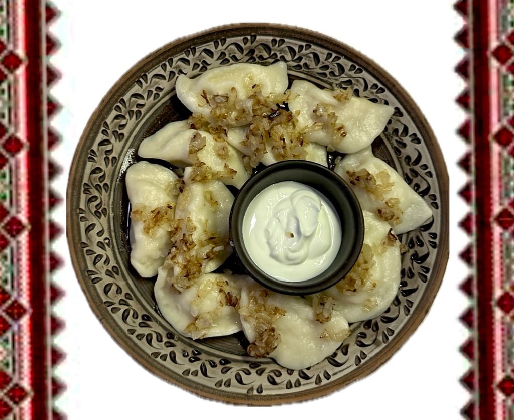 Вареники з цибулею та сметаною